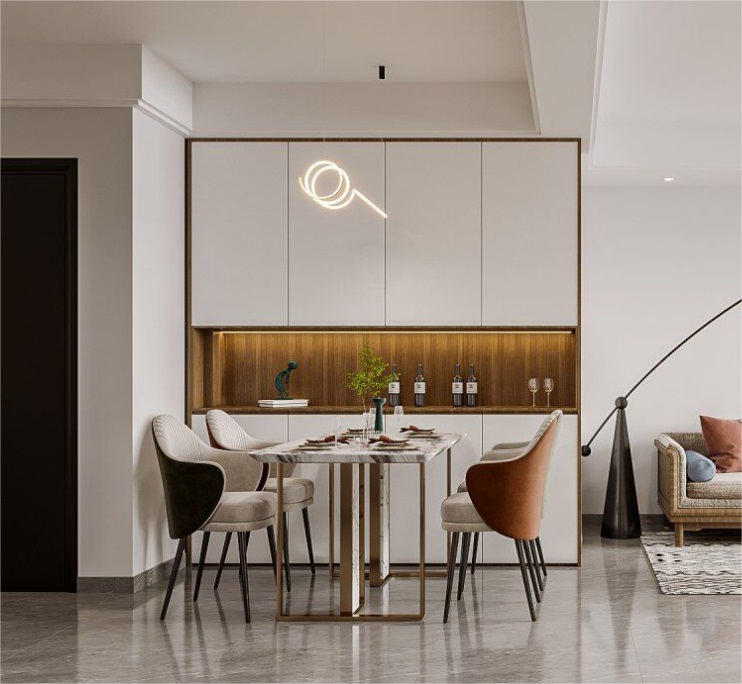 餐廳選擇淺色作為主色,放大空間,明亮視覺打造無壓迫感的用餐空間。
